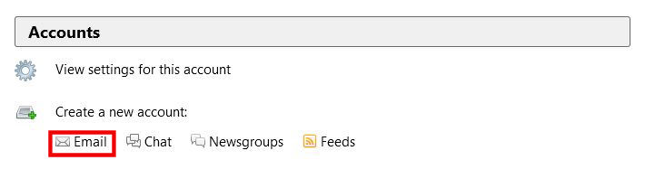 From Thunderbird's opening screen, select "Email" under "Create a new account".